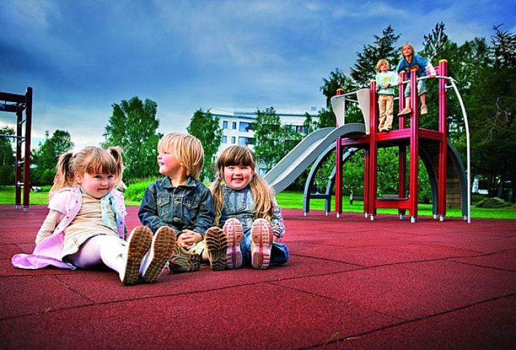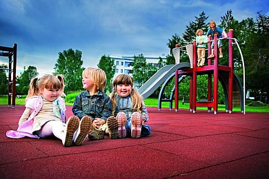 Резиновая плитка обладает упругой структурой, которая амотизируется и поглощает удары при падении, поэтому она незаменима на детских и спортивных площадках, где высока вероятность травматизма. Безопасность - один из основных плюсов резиновой плитки. Еще одним плюсом такого вида покрытия являются ее нескользящие свойства, что особенно актуально в осенне-зимний сезон. Именно поэтому резиновая плитка является прекрасным решением для входных групп магазинов, супермаркетов, загородных домов и тп.